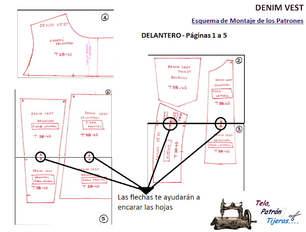 Las hojas del 1 al 5 corresponden a los patrones del Delantero.