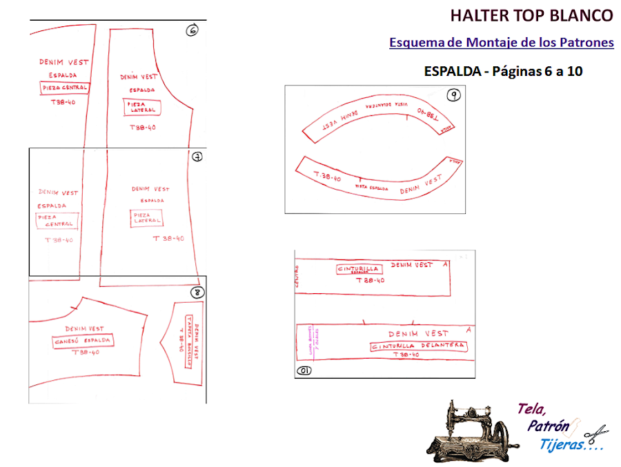 Las hojas del 6 al 10 corresponden a los patrones de la Espalda.