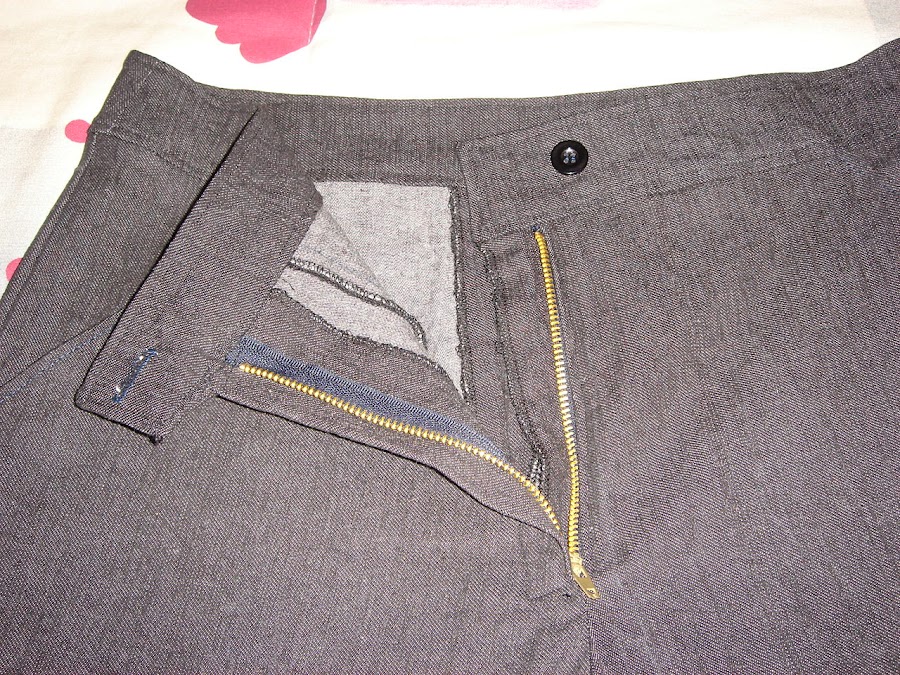 El modelo de los pantalones es ancho con cinturilla ancha y cremallera metalica central.
