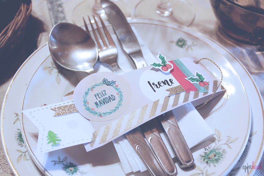 Como ves es algo sencillo, he creado un indicador de asiento que sirve de envoltorio para la servilleta. También he utilizado como elementos de decoración de la mesa las estrellas de madera que te enseñaba ayer con alguna cositas mas para completar.
