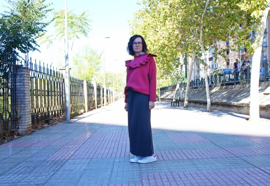 Yo tenaz claro que quería una falda larga de punto para este invierno y cuando vi la tela no lo dudé. La falda ha quedado justo como la imaginaba, con cuerpo, una caída perfecta y calentita. Tenéis la tela, un punto roma, haciendo click AQUÍ