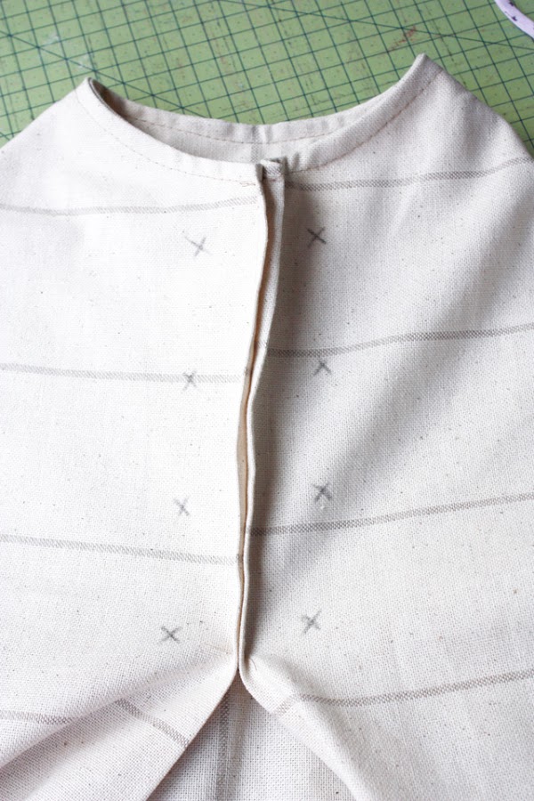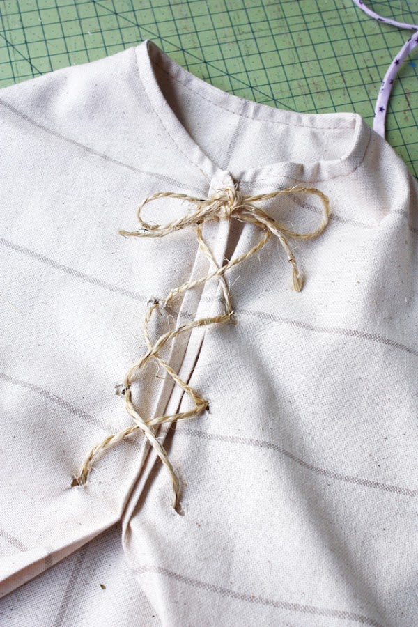 Abre y plancha esta costura. Marca con un lápiz unas marcas para colocar a mdo de adorno una lazada con la cuerda.