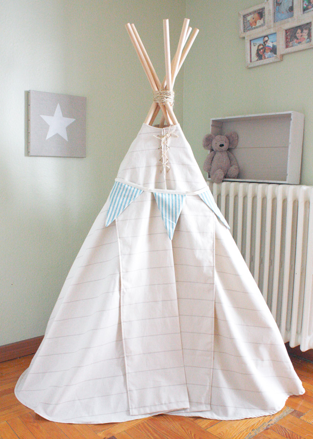 Al principio no tenia claro que hacer, lo que si sabía es que queria algo de decoración y hogar. Buscando inspiraciòn por pinterest, di con varios proyectos de tipis y me acorde que lo tenia en mente desde hace mucho tiempo y esta era la oportunidad ideal!! Tenía muchas ganas de que mis peques tuviesen un lugar de refugio para leer o jugar... ya me hubiese gustado a mi tenerlo de pequeña!!