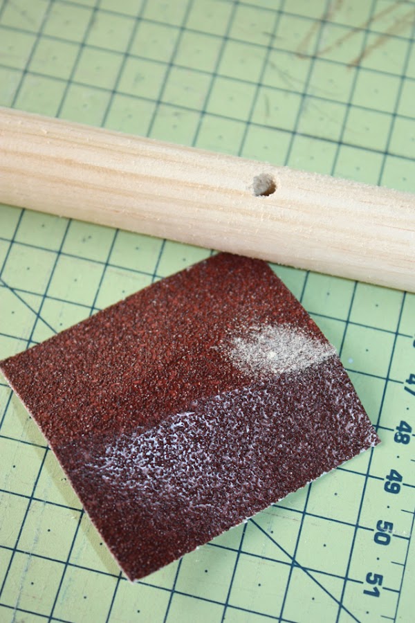 Una vez hemos hecho todos los agujeros (12 en total), con una lija los lijamos para evitar posibles pinchazos con astillas y para que quede suave al tacto esa zona.