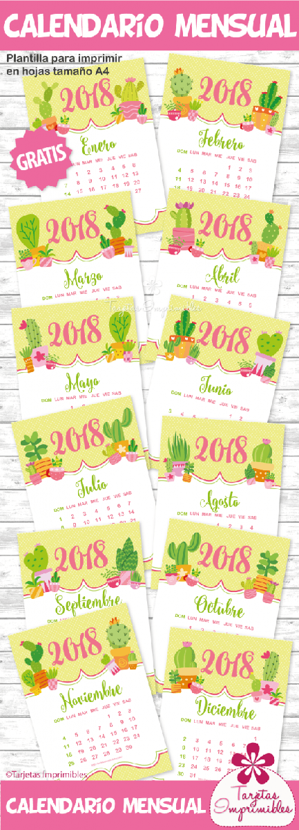 Espero que te guste y sirva para marcar los momentos más importantes de tu vida. Aquí vas a ver una muestra con los doce calendarios correspondientes a cada mes de este año nuevo 2018. Van a estar disponibles para la descarga gratuita unos días antes de finalizar cada mes.