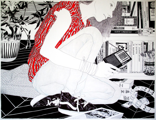 Sus ilustraciones son escenas cotidianas en las que aparecen jóvenes u objetos de nuestro día a día, que suele captura con su cámara, aunque también le gusta dibujar mientras los observa.