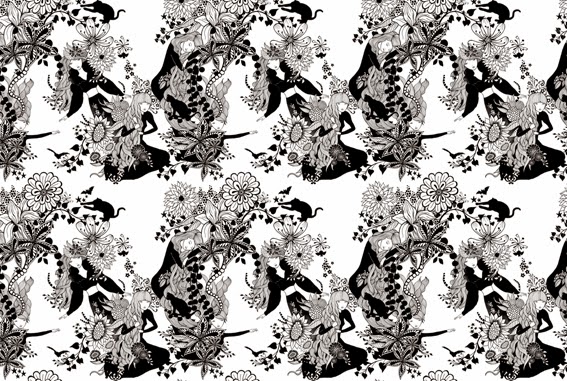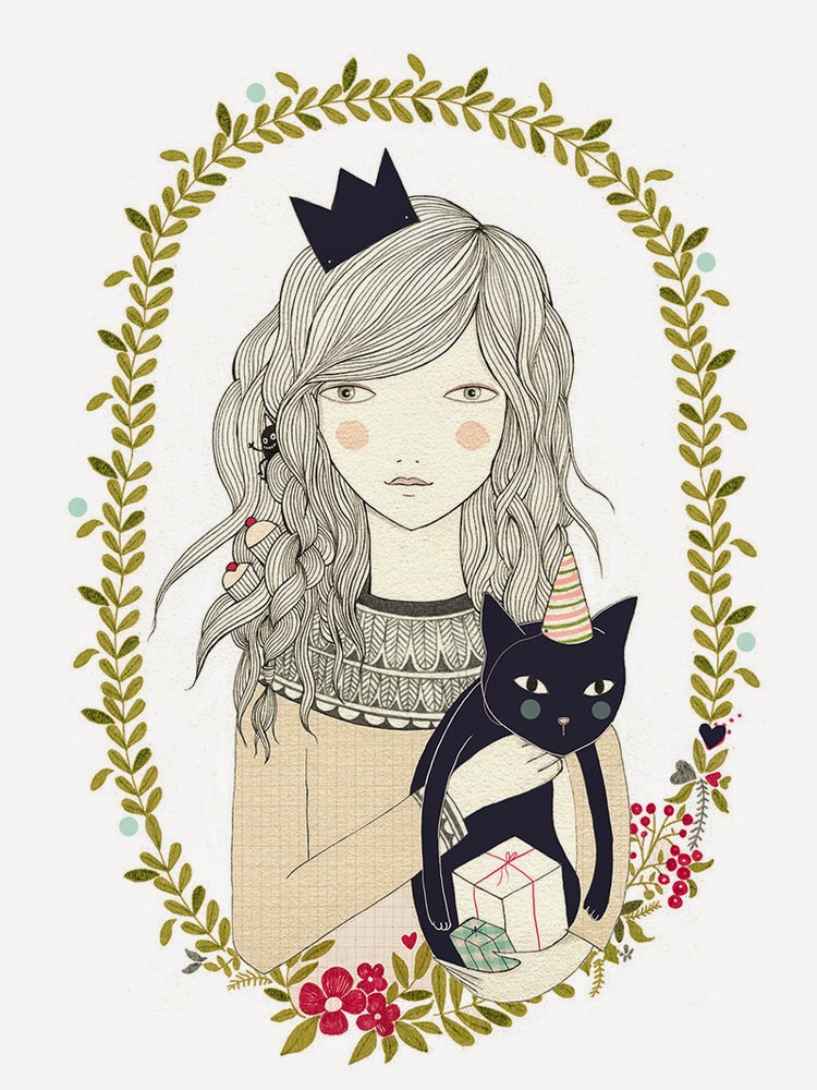 ...fue evolucionando hasta sus ilustraciones actuales en las que siempre aparecen elementos de la naturaleza mezclados con otros de cualquier tipo (¡algunos de lo más sorprendente!), rodeando y acompañando al personaje central, con sus curiosos ojos separados y sus poses con un aire lánguido.