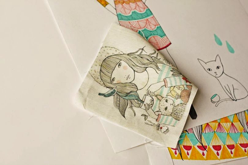Además ¡no solo podemos disfrutar sus ilustraciones sobre un papel! También ha hecho colgantes, libretas, bolsos, tazas, camisetas...