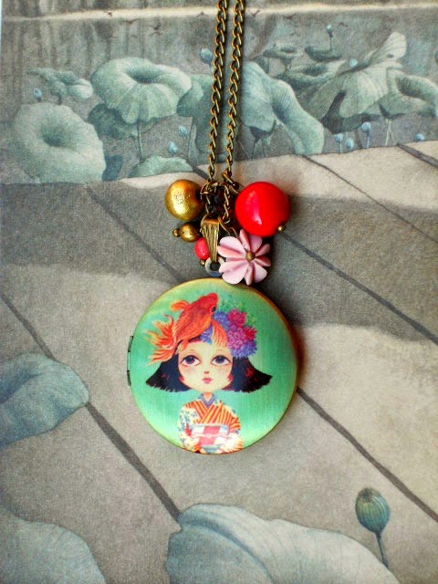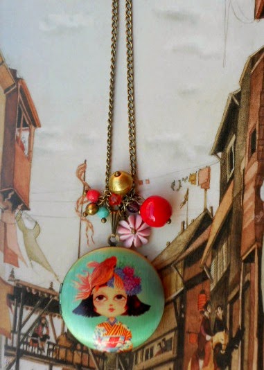 Entre otras, aquí una de las razones que me han tenido desaparecida estos días. Ya os dije que la primavera venía cargada de novedades, aunque precisamente ésta haga pensar ya en el verano. El resto... próximamente. Poco a poco. Medallón con abalorios de metal y cristal checo. Ilustraciones: Rèbecca Dautremer