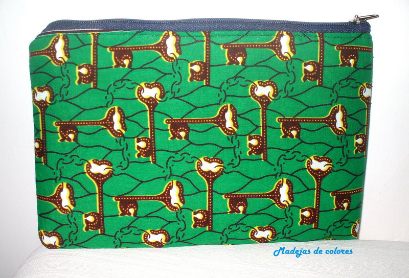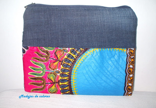 Continuamos con el modelo de cremallera, esta en concreto con vaquero y una tela bien alegre en fucsia y turquesa.