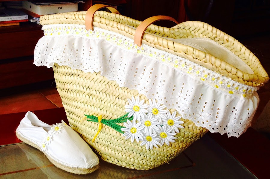 Pensé hacerlo con unas Margaritas de encaje que ya le tenis el ojo echado y como complementó pensé en unas zapatillas de esparto de esas tan baratitas que van tan bien en verano. Así qué me puse manos a la obra.