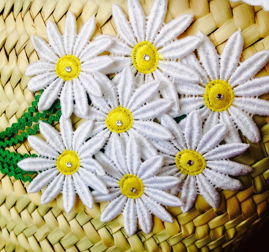Aquí una imagen de las Margaritas, donde fui colocando unos brillantitos. Quie probar un apara tejó que me compre donde se colocan en un momento