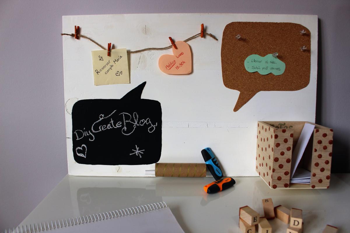 Puestos en la organización, otro DIY que os gustó fue el tablero para escritorio a partir de un tablón de madera, pintura e imaginación. Todo bien organizado para trabajar mejor.