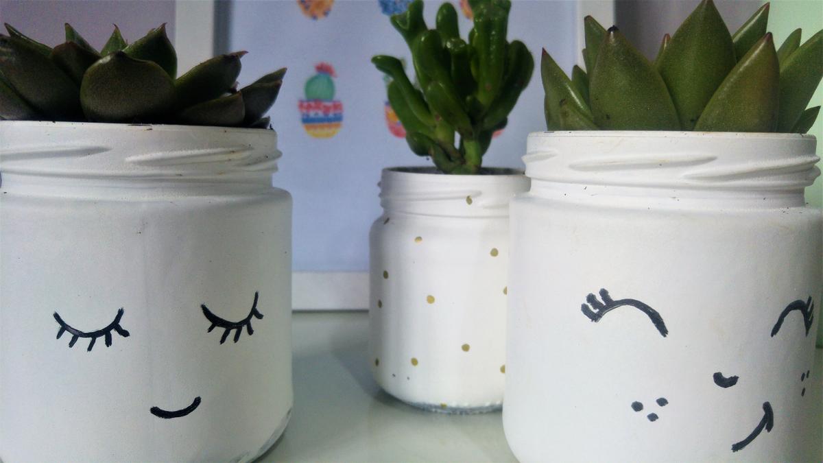 Para todos aquellos a los que nos gustan las plantas pero que por alguna misteriosa razón se nos mueren, he aquí la solución: las suculentas y los cactus. Aunque, sinceramente, a mi tampoco es que me duren una eternidad… Y para decorar cualquier rincón de nuestra casa con estas pequeñas plantitas, y reciclando los botes que nos hayan quedado por casa… Unos maceteros divertidos para plantas “resistentes”.