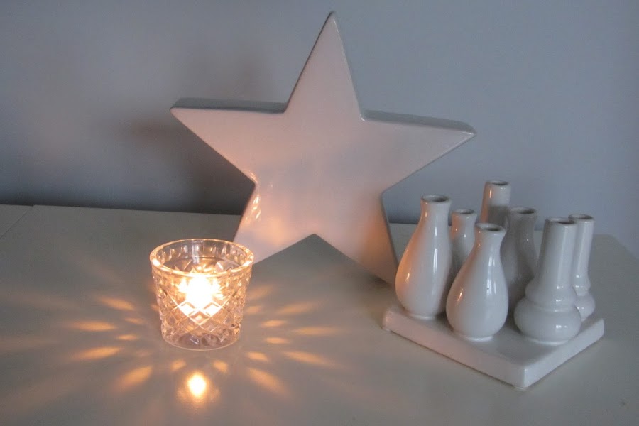En el mueble de la TV deje mi estrella de ceramica con mis minis jarroncitos, los cuales estan esperando para colocarle unas pequeñas ramitas, tambien un portavelas comprado en el mercado de pulgas !
