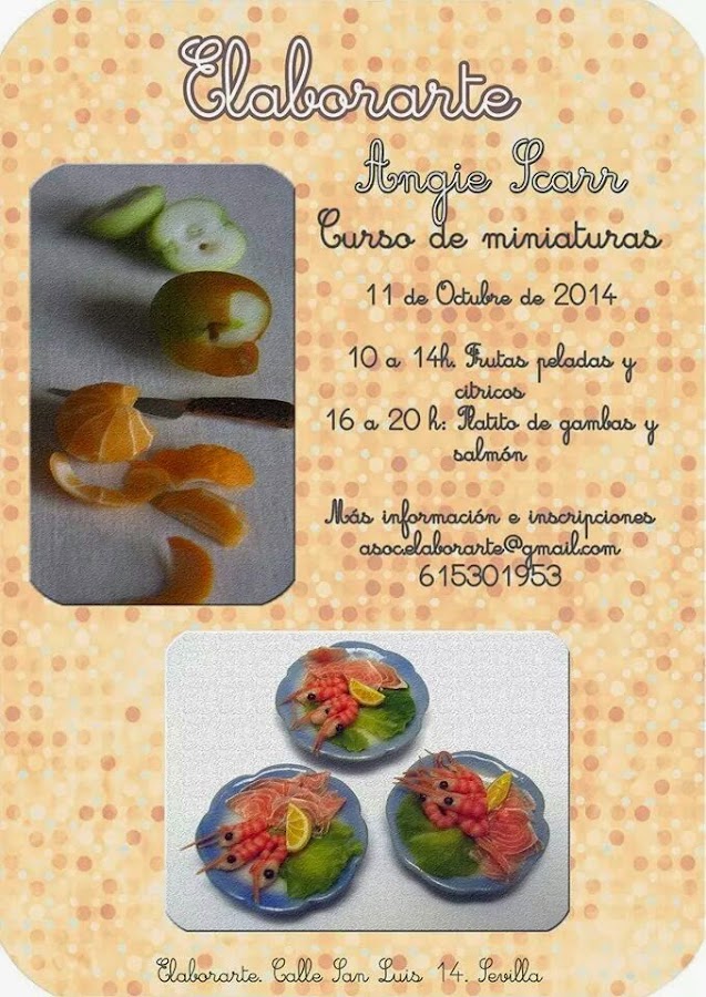 Tengo varias fotos por enseñaros de los cursos que hice con Angie Scarr, una miniaturista de arcilla polimércia que realiza maravillas con la comida en miniatura. Aquí podéis ver en su página todo lo que hace: http://www.angiescarr.co.uk/. Es una persona maravillosa, que disfruta muchísimo con su trabajo. Es muy minuciosa en todos los detalles, por eso parecen tan reales todas sus creaciones. En la próxima entrada os enseño lo que saqué de provecho en sus cursos.