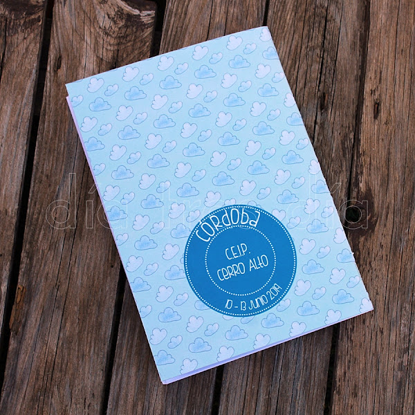 Sabiendo esto, preparé el nuevo dibujo, en el que incluí una imagen de la Mezquita de Córdoba y ya con él listo, encargué que lo imprimiesen sobre camisetas y mochilas, al igual que el curso pasado. Y también hice los diarios de viaje, para que en ellos apunten todas sus vivencias.