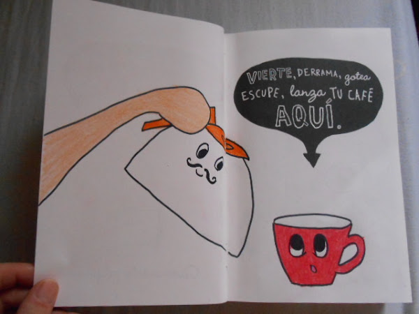 jajaja! como no quería manchar las hojas, vierte el café dibujándolo