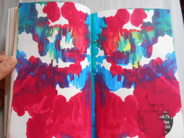 poniendo pegotes de pintura y apretando página contra página