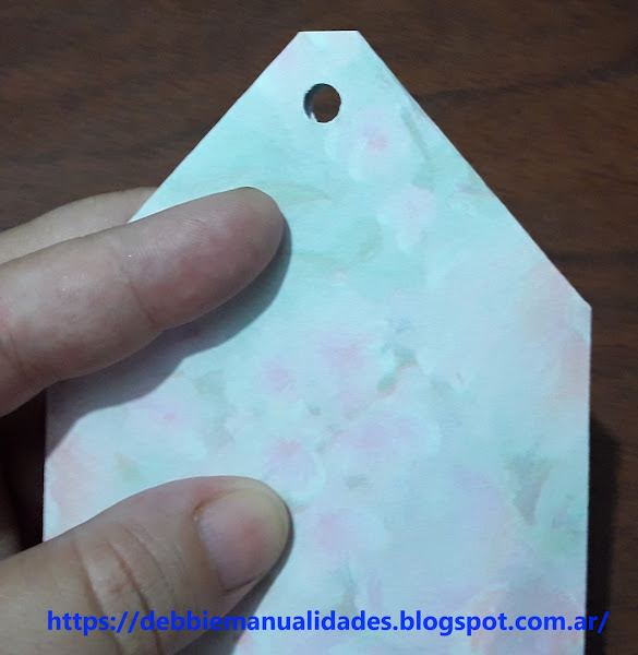 Con la ayuda de una perforadora de papel (yo tengo las de un solo ojal, pero puede ser de las comunes perfectamente) le hice un agujerito, tratando de que me quede centrado
