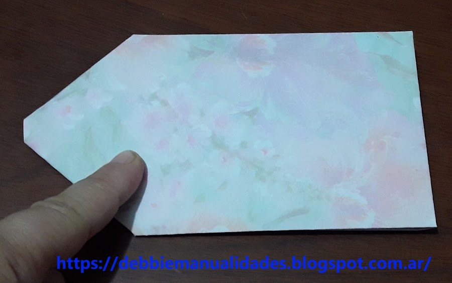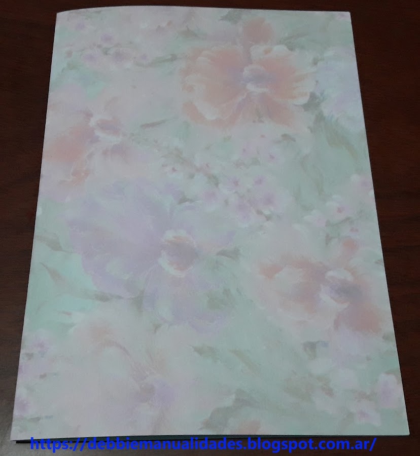 Utilice una hoja A4 decorada en una de sus caras (la parte visible tiene flores, y el interior es celeste), pegamento, tijeras, perforadora y elementos de decoración.