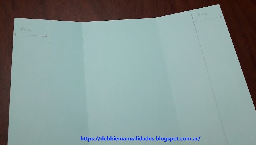 me quedó doblada de esta forma; luego, marque desde el borde hacia el centro 3 cm de cada lado