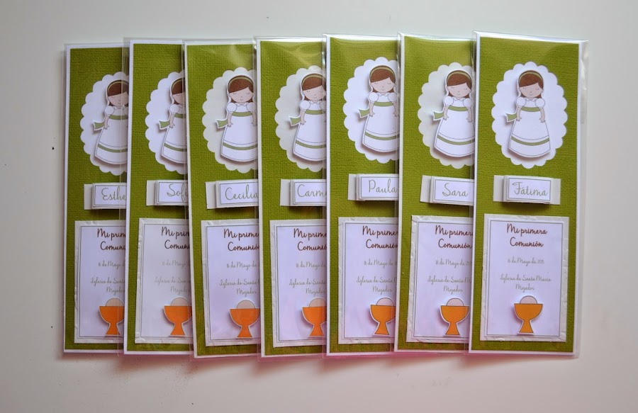 Con la llegada de mayo y el buen tiempo llegan las comuniones.. y yo tuve un super encargo por parte de una super catequista de Mojados que quiso regalar a sus niños un bonito marcapáginas para que recordasen ese día tan especial...
