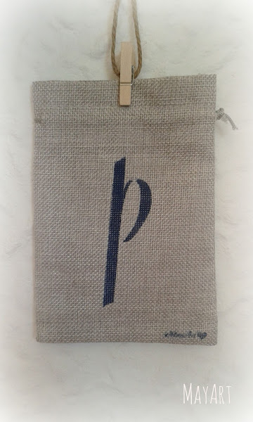 Tampoco íbamos a entregar los detalles sin una bonita presentación, así que estarcí la inicial en una bolsita de lino con hilos plateados y voilà!!! Mi mami ya la tiene repleta de pétalos de flores secas colgada en el armario. ¡Qué buen ambientador! Se acepatn ideas para más utilidades, jiji ¿Os gusta?? Pues ha gustado mucho y ya hay apuntados futuros encargos!!!