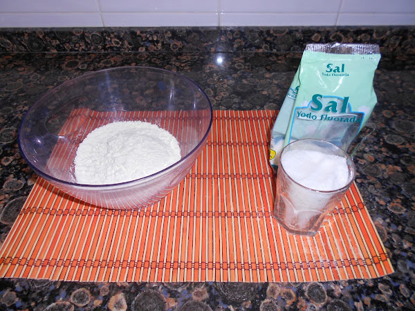 1- Preparar la masa de sal. Para ello mezclar la harina, la sal y el agua en un mismo bol