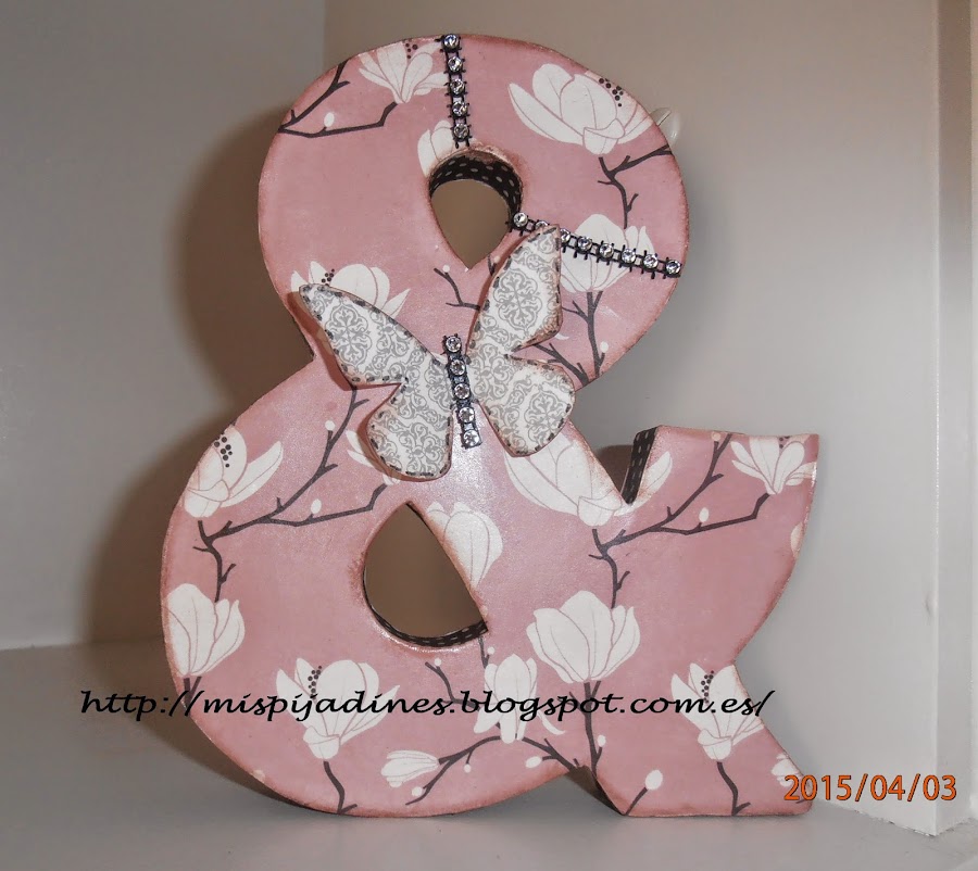 el símbolo como he comentado esta hecho con cartón y forrado con los papeles de scrap, tonos muy parejos a los de las letras...