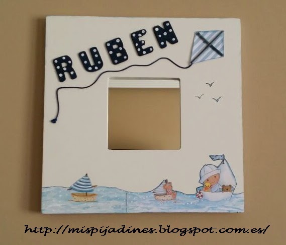 Para los niños que portaron las arras me encargó unos cuadros con sus nombres....están hechos con los papeles de dayka y pintados a mano