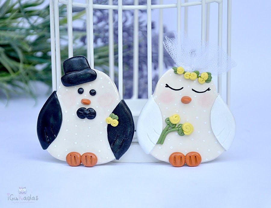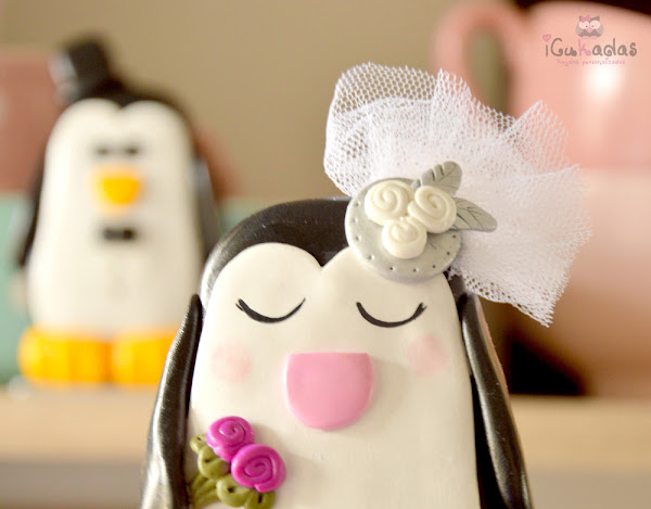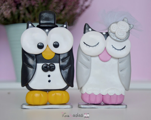 Tenemos muñecos para tarta de boda, de búhos y de pingüinos, pero en breve, sacamos un nuevo modelo que os enseñaré.