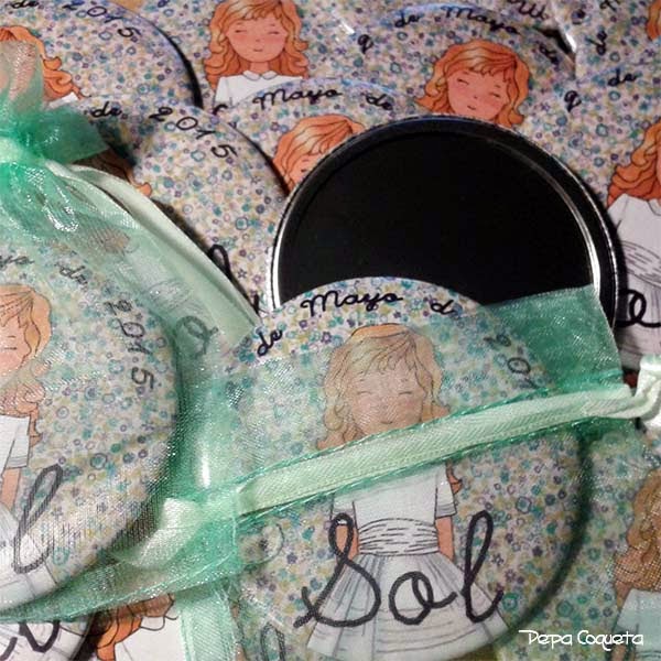 Y los espejos en bolsitas de organza a tono, para guardar en el bolso, un regalo perfecto para las señoras ;)