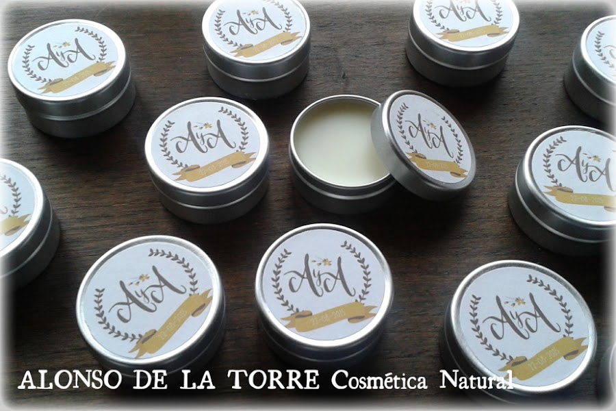 Bálsamos labiales de karité, cacao, aceites vegetales, cera y miel con etiqueta personalizada: