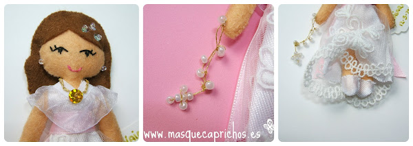 El motivo elegido: unas muñecas de FIELTRO, pero no solo de fieltro porque también llevan puntilla, lentejuelas, abalorios, raso, y alguna que otra cosa más. Ya no me entretengo más que estoy deseando enseñaros el resultado: