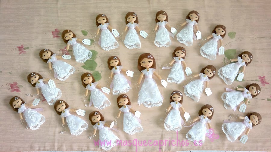 Las muñecas no les faltaba detalle, ni su medalla de comunión, ni su rosario, y por supuesto unos zapatitos blancos que no iba a ir descalza.