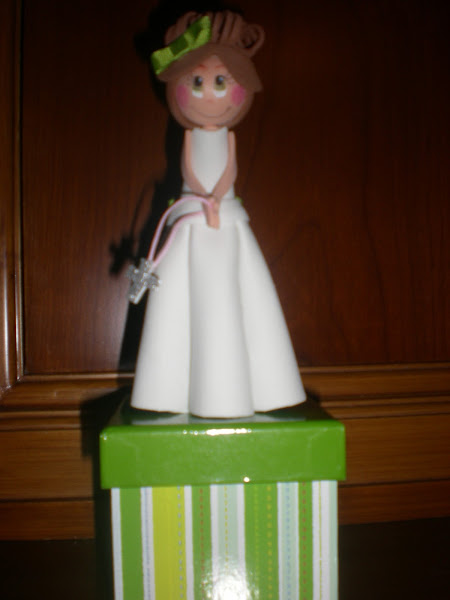 Si en la anterior entrada os hablaba de la Primera Comunión de mi hijo mayor, en esta y en alguna más seguiré con la misma temática, ya que es lo que me está teniendo entretenida en estas últimas semanas. Mónica, que el año pasado confió en mi para que le hiciera numerosas cosas para la Primera Comunión de su hija Claudia, quiso este año encargarme un detallito para regalar a una niña que la hizo ...