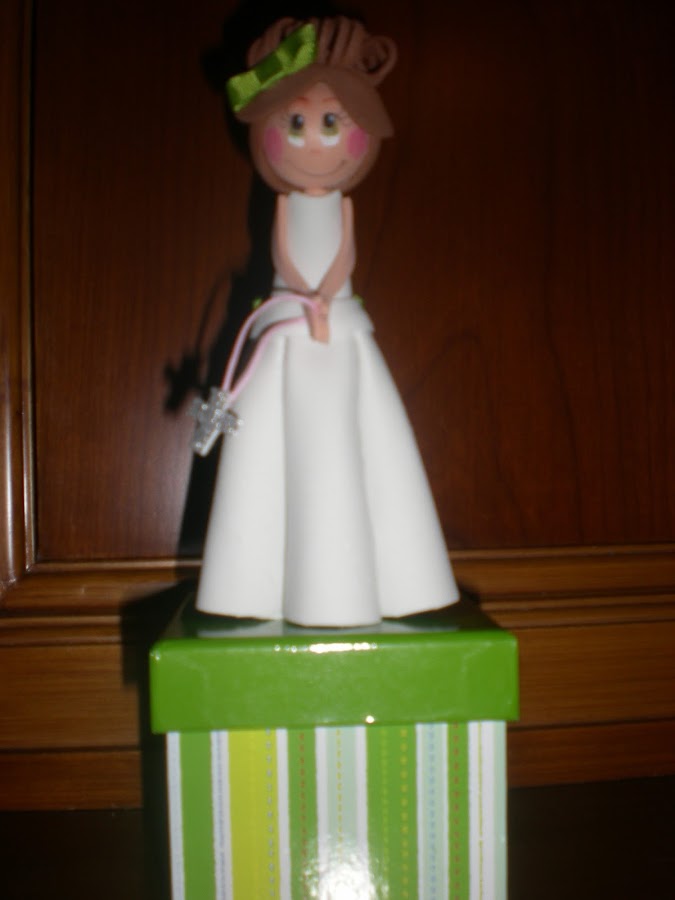 Buenos días a tod@s, Como lo prometido es deuda, y ya hemos tenido la fiesta con los amigos, vengo a enseñaros los detallitos que hice para dar en las celebraciones de la Primera Comunión de Laura. Para las mamás, un jabón decorado con decoupage Para las niñas, una cajita de chuches con forma de vestido Para los niños (como no me gustaba regalarles un vestidito) una cajita de chuches de goma e ...