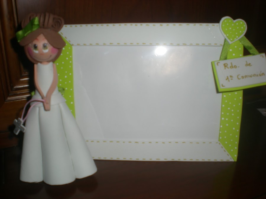 Marco hecho de goma eva y masa flexible. Se pueden personalizar con nombres y en los colores