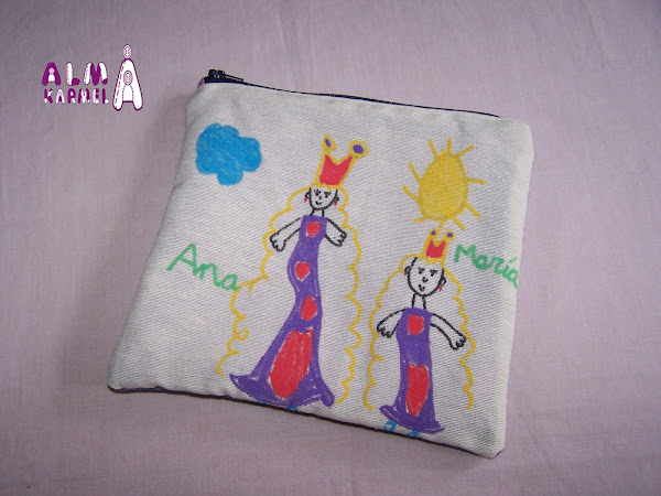 Y también quería hacerle un regalo especial a su profe, y uniendo sus ideas, hicimos esto, un estuche con un dibujo hecho por ella