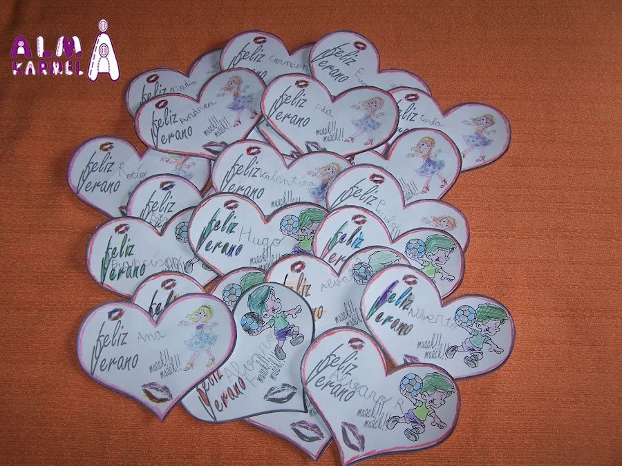 Nos estuvo contando cómo las quería, en forma de corazón, con un dibujito, el nombre de los compañeros....y lo quería hacer ella, pero claro, el problema era que teníamos sólo unos días y compañeros 28, por lo que las cuentas no salían, jejejeje.