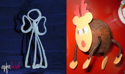 Empecemos con los de las Navidades 2009 y 2010. Un reno con corcho y goma eva. Por otra parte un ángel hecho con escobillas de limpiar pipas.