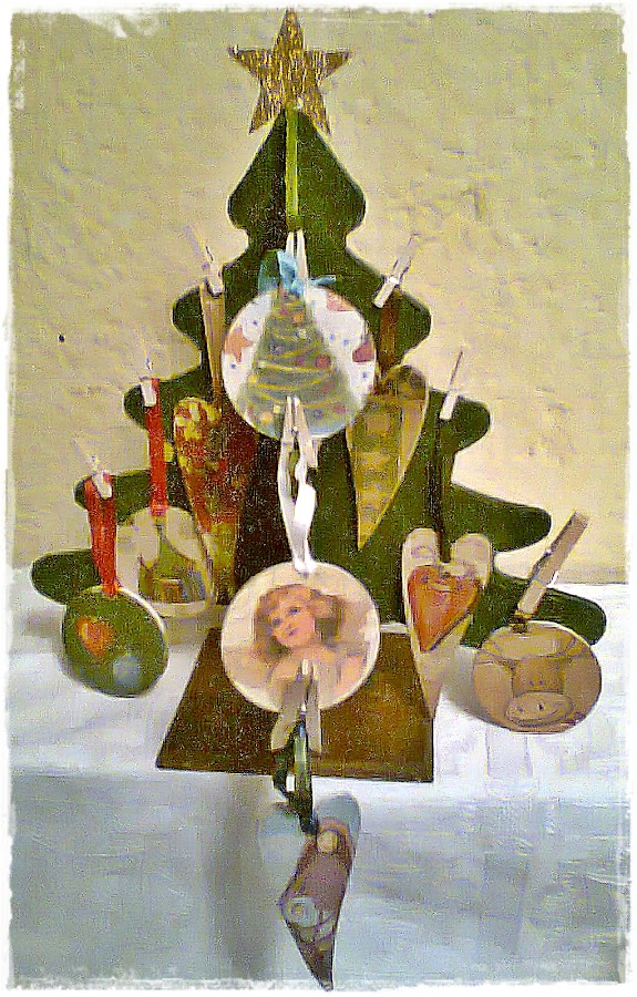 En este post les muestro unos detallitos para decorar el árbol de navidad que hice para mi stand de artesanias. Están realizados en base de madera, decorados en decoupage, craquerlado, pátina y detall ...