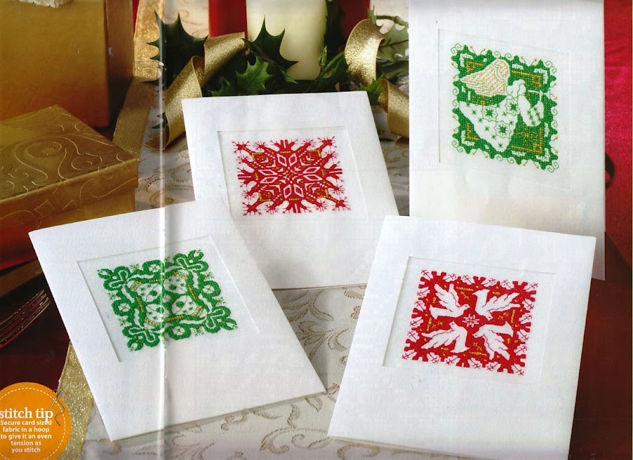 He realizado algunos detalles navideños para regalar. Vamos a verlos. Unos adornos para colgar del árbol pintados en tela con lápices de colores. Como este simpático reno. Trasera. Otro adorno, este con el niño Jesús, La trasera. Una corona navideña. Y su trasera. Y por último, una fresa a punto de cruz. Detalle de la hoja aplicada. Todo iba acompañado de un ...