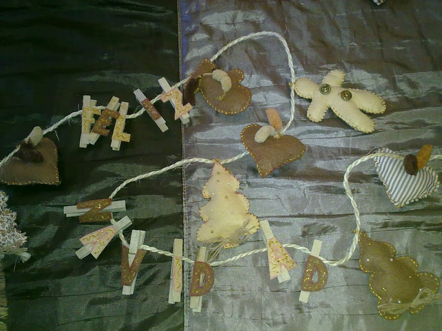 Realizada con los mismos materiales que el cartel pero añadiendo esta vez una cuerda y pinzas para la ropa. La verdad es que disfruté como una enana haciéndolo.