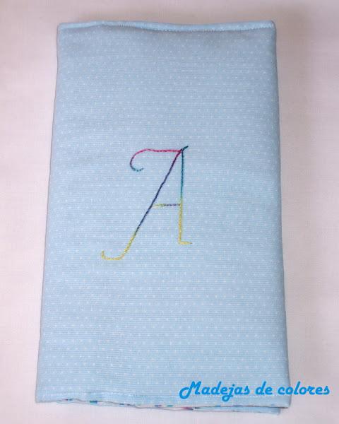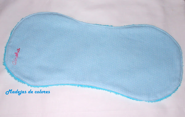 Seguí con la famosa ya por todas, toallita para eructos, con felpa en trasera y su nombre también.