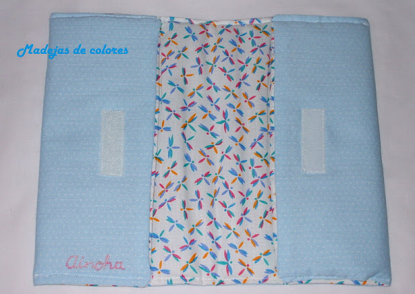 Luego un práctico estuche, con las mismas telas y velcro como cierre, para llevar pañales y toallitas húmedas.