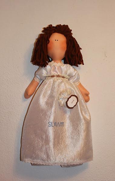 Están ya cerca las fechas de bodas y comuniones, y algún que otro bautizo.Cada vez más la gente busca ofrecer regalos originales, fuera de los típicos bombones o cestitas. Así, han salido del taller invitaciones de boda, marcapáginas , sobres para cd con la música que sonó en una celebración, carpetas tamaño cuartilla para los hombres y personalizadas con caras de niño o niña para los invitados más pequeños , pequeños álbumes con encuadernación japonesa, álbumes de comunión/ libro de firmas, el último entregado ayer,marcos de fotos, recordatorios y muchas muñecas. Las tildas triunfan, pero también he hecho este otro modelo de comunión que ha quedado monísima. Me mandan foto o me cuentan detalles del vestido y me ajusto lo más posible a ello.Y estas mini tildas que son una delicia y que están ahora mismo en el taller.