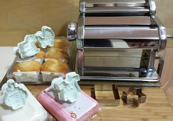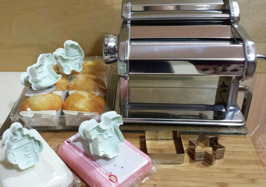 PASO 1: estirar el fondant con el rodillo o la mandolina (como digo, usamos la mandolina de mi hermana para ganar tiempo).