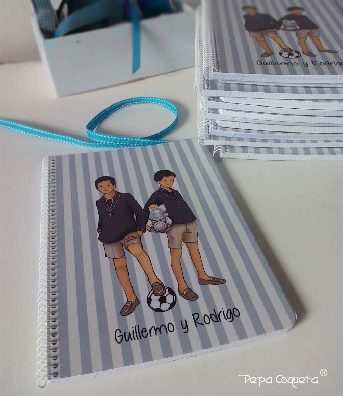 Las libretitas con el dibujo del protagonista del día a juego con todo lo demás. Los bolígrafos son opcionales.